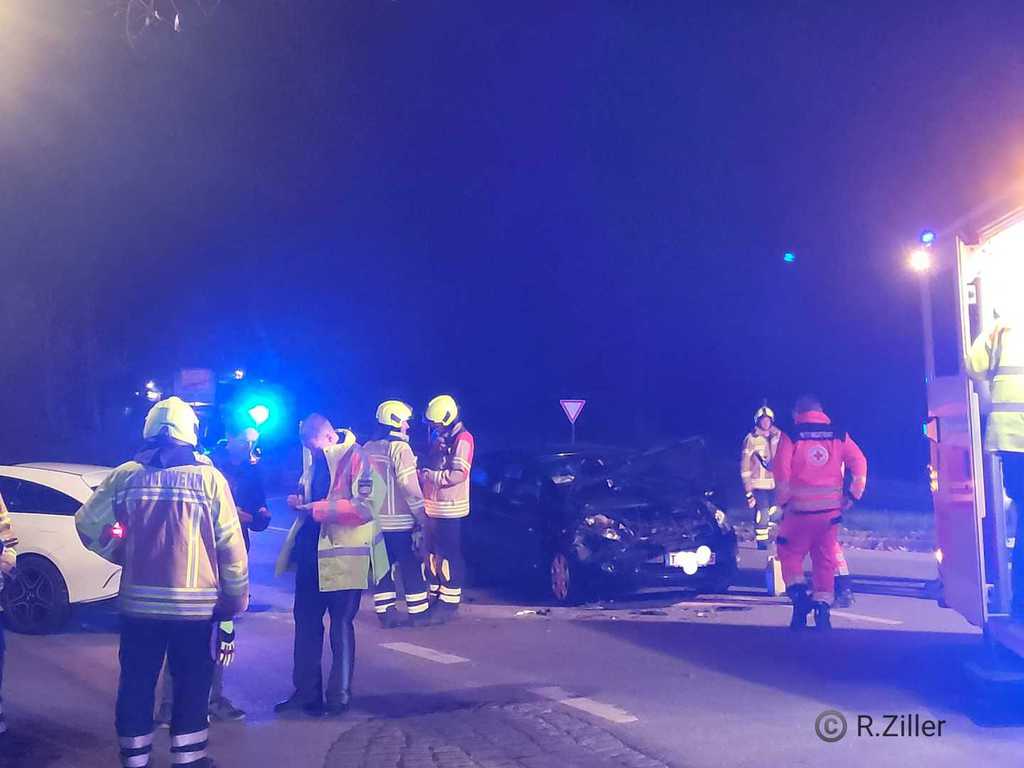 Verkehrsunfall: PKW Überschlag - 5 Insassen, Fahrzeug auf dem Dach, näheres unklar. Am Tratenbach - Bachmaiergasse, Notruf über E-Call (Automatischer Notruf)