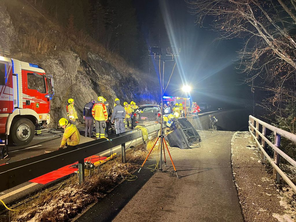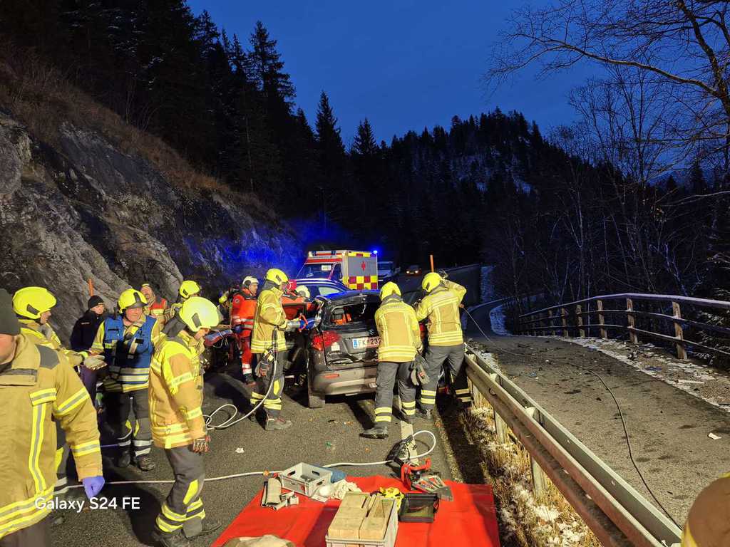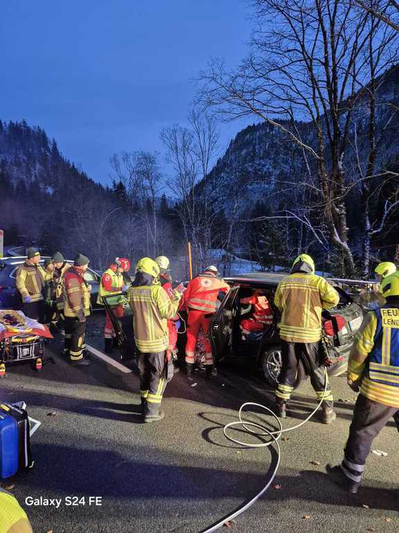 Verkehrsunfall, Person eingeklemmt, Sylvensteindamm Richtung Landesgrenze.