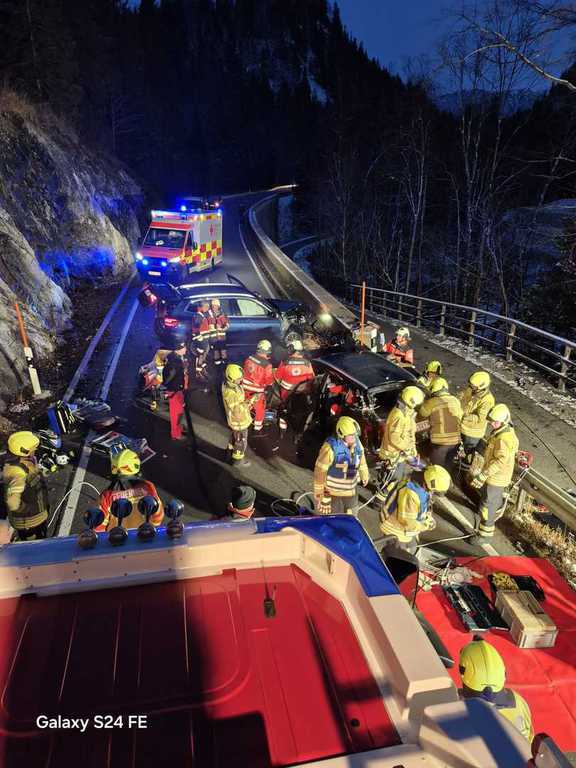 Eine junge Dame erlitt schwerere Verletzungen und musste nach der Erstversorgung durch den Rettungsdienst ins Krankenhaus verbracht werden. Alle anderen Insassen erlitten glücklicherweise nur leichten Blessuren. Aufgrund der Örtlichkeit und der Anzahl der gemeldeten Fahrzeuginsassen unterstützte uns neben dem Rettungsdienst und 2 Notärzten auch die Bergwacht Lenggries. Ein angeforderter Rettungshubschrauber kam nicht mehr zum Einsatz. Ebenfalls vor Ort waren Polizisten aus Bad Tölz, die die Unfallaufnahme durchführten.
